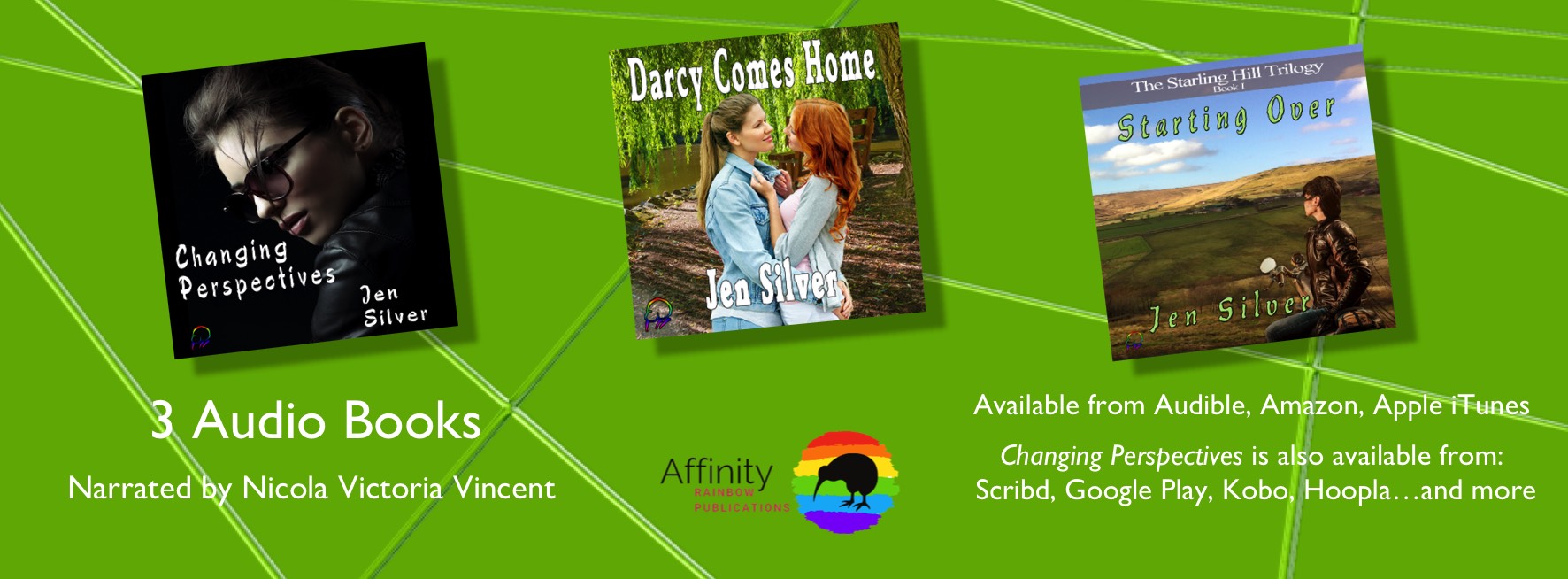 Print and eBooks by Jen Silver are available from Affinity Rainbow Publications / Amazon, Bella Books, Barnes & Noble, Smashwords, Apple iTunes